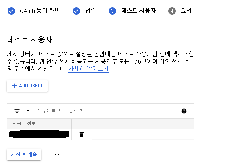 OAuth 동의화면 페이지에서는